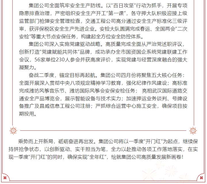 集團(tuán)公司順利實(shí)現(xiàn)一季度“開門紅” 蓄勢(shì)賦能高質(zhì)量發(fā)展新征程